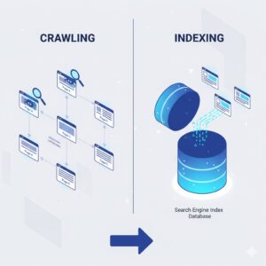 Crawling is the process of discovering web pages, while indexing is the process of storing and organizing those pages in a search engine’s database. A page can be crawled but not indexed due to issues like duplicate content, low quality, or noindex directives.